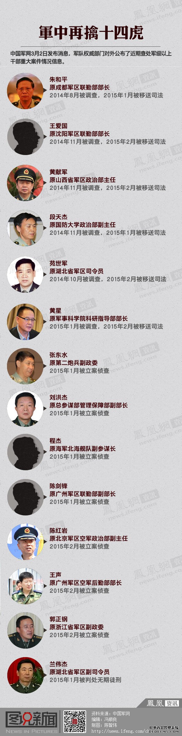3月2日下午5点,军队权威部门再次公布14名高级军官被查处情况。