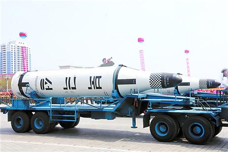 这是昨天朝鲜阅兵式上展示的“北极星—2”型潜射中程弹道导弹。 新华社发