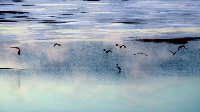 鸟盘桓在水面。