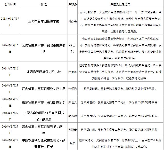 另外,据记者不完全统计,自十八大以来,至少有20名省部级以上官员遭遇断崖式降级,“严重违纪”是根本原因。