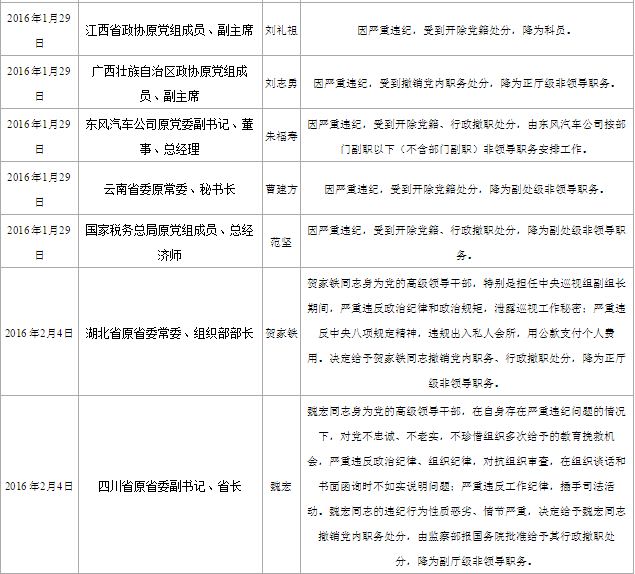 2016年12月1日,《求是》杂志发表了一篇中央政治局常委、中纪委书记王岐山于10月31日的讲话,其中讲道:“(十八届)六中全会上,有一名中央委员和一名中央纪委委员就请假了,因为他们所领导的部门出现了系统性腐败,中共中央决定对他们问责。”