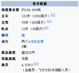 我们来看下尼米兹级航母的主要参数。