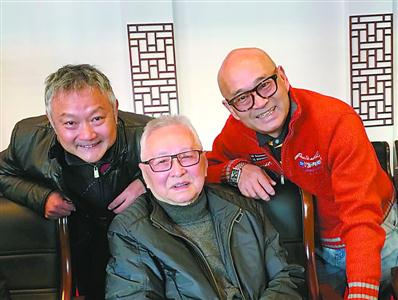◆欧阳奋强(左)、陈洪海(右)与87版电视剧《红楼梦》导演王扶林(中)合影。 陈凯姿 摄