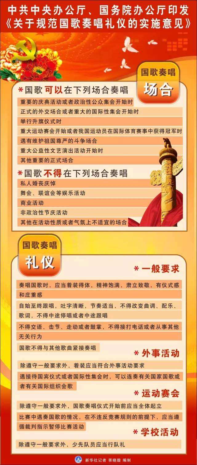 2014年底,中共中央办公厅、国务院办公厅就印发了《关于规范国歌奏唱礼仪的实施意见》。