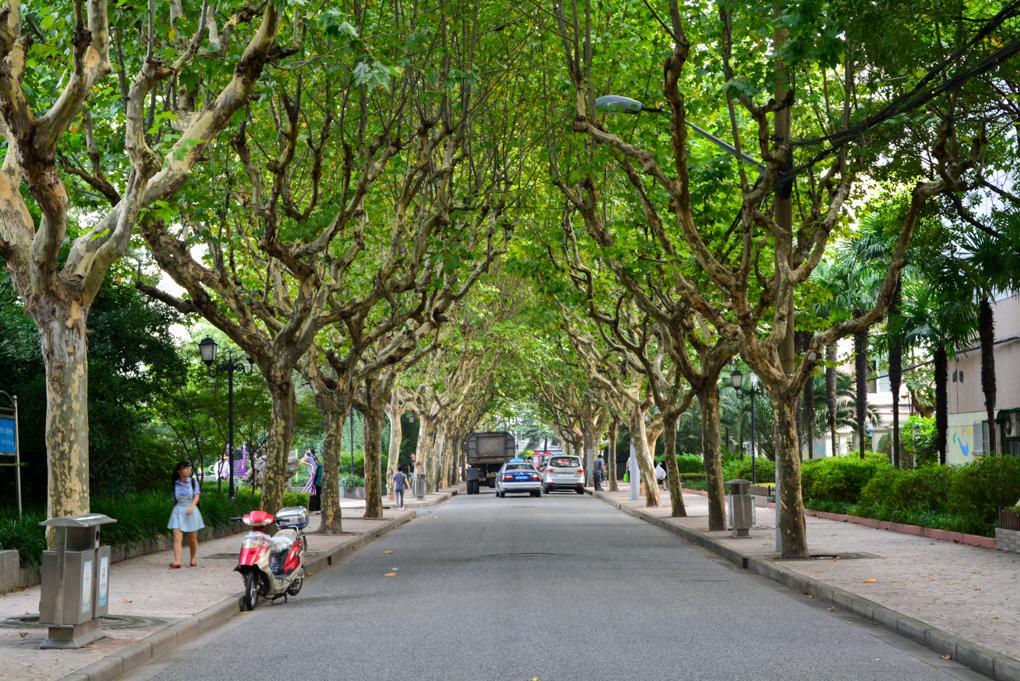 在上海中心城区划定的12处历史文化风貌保护区中,遮天蔽日的林荫道令人心旷神怡。这些林荫道夏季带来清爽凉意,秋季带来梧桐落叶之美,冬季阳光穿透树枝洒满大地,春季万物复苏、新芽刚上枝头,林荫道更是让上海的老马路、新马路都披上“萌萌”的绿衣。