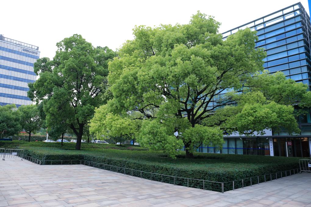 “这些业主对林荫道都有认识、有感情,也愿意为保留、保护行道树出力。”据介绍,由于愚园路人行道较窄,一些店铺在装修时主动体现人与自然、街区的融合,把店铺门面往后退一些,留出更宽阔的公共空间,让室外梧桐树、沿街绿化的自然气息感染店内的用餐者。在愚园路1107弄,弘基创邑国际园将园区的停车场改造为公共草坪,打开围墙邀请市民“踏青”,现在这处“口袋公园”已经成为“网红”,不仅是新晋求婚胜地,还是附近老外们周末晒太阳、遛狗的第一选择。古树虽老,但在上海全新的城市街区中,古树却能够被赋予全新的意义。在杨浦创智天地园区,有一株被列入古树后续资源的老香樟,茂密舒展的树型在园区玻璃幕墙办公楼的包围中宛如一个“绿岛”。轨交10号线建设时,为了将这棵当时近80岁高龄的古树完好保留,创智天地园区内专门配置以香樟为主的树木,形成统一的氛围。