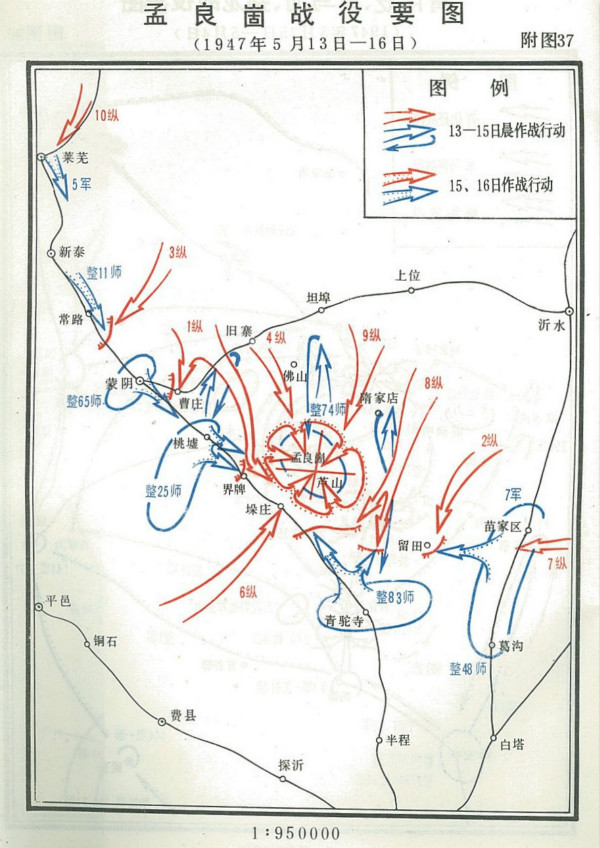 5月上旬,解放军主力东撤莱芜、新泰、蒙阴一线的鲁中解放区腹地,国民党军被这一假象所迷惑,判断解放军已经“兵疲势衰”,遂命令第一兵团向坦埠、沂水推进,第二兵团向博山、张店推进,迫使解放军与之决战。第一兵团以张灵甫的整编74师居中,整编25师、83师为左右两翼,限令两天拿下坦埠,74师和两翼之间的距离少则五六公里,多也不过七八公里,虽然中间有山峦阻隔,但这点距离怎么也算不上是孤军冒进。