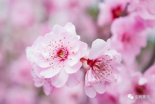 小河沿儿的杏花,粉红色一团团的惹人眼