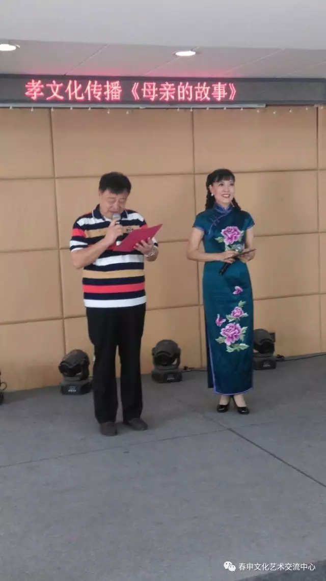 2017年5月14日下午,在外滩社区文化活动中心406多功能厅,由上海诗剧社主办、海派诗人社、老辰光网站协办的孝文化传播《母亲的故事》诗歌朗诵文艺展演活动正火热举行,主持人由上海中华诗词诵读百强刘秋妹与郭新权联袂担当。