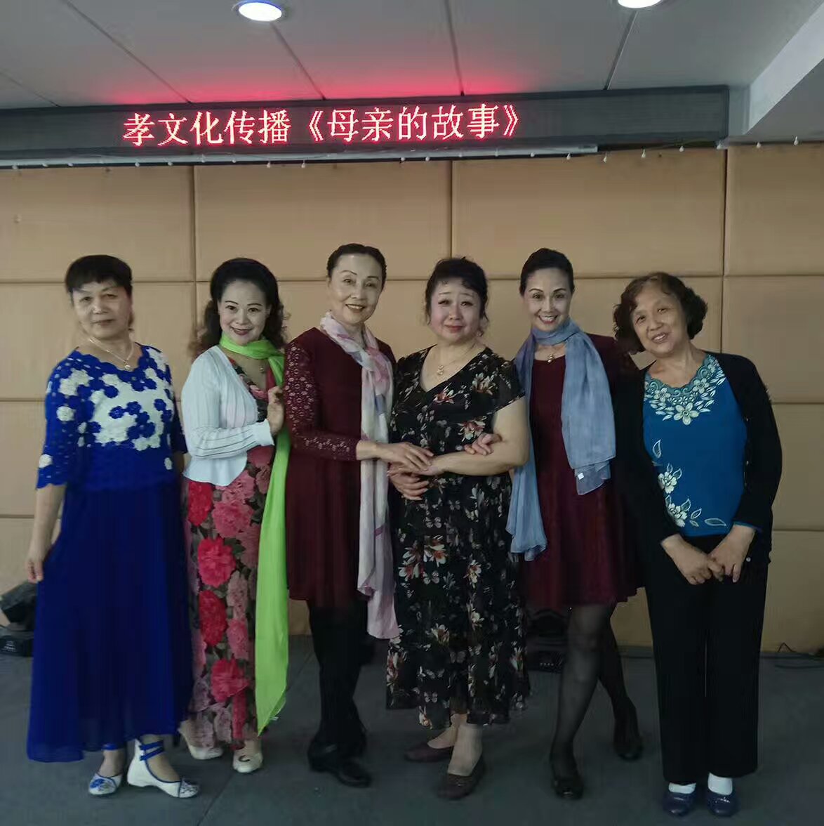 剧社有几位八路军新四军抗联和老革命的红二代,他们凡事必为他人着想,事事走在前头。主持人刘秋妹,是原宜昌电视台的新闻主播,她把90多岁老母委托他人照顾,匆忙地赶回了上海,就为这孝文化传播,就为了更多人的《母亲的故事》。她的作品《大爱无疆》讲了南下母亲的感人故事;上海诗剧社朗诵艺术团团长隋虎放弃个人的表演,为大家做音控操作,精准服务;他和舞队的队长张蝶芳和李爱云,一大早就赶到场地,擦桌子、摆椅子、打扫卫生、买水、摆放茶点。他们三个人男女中低音混声《大海啊故乡》,载歌载舞,是全场的结束节目的亮点… …