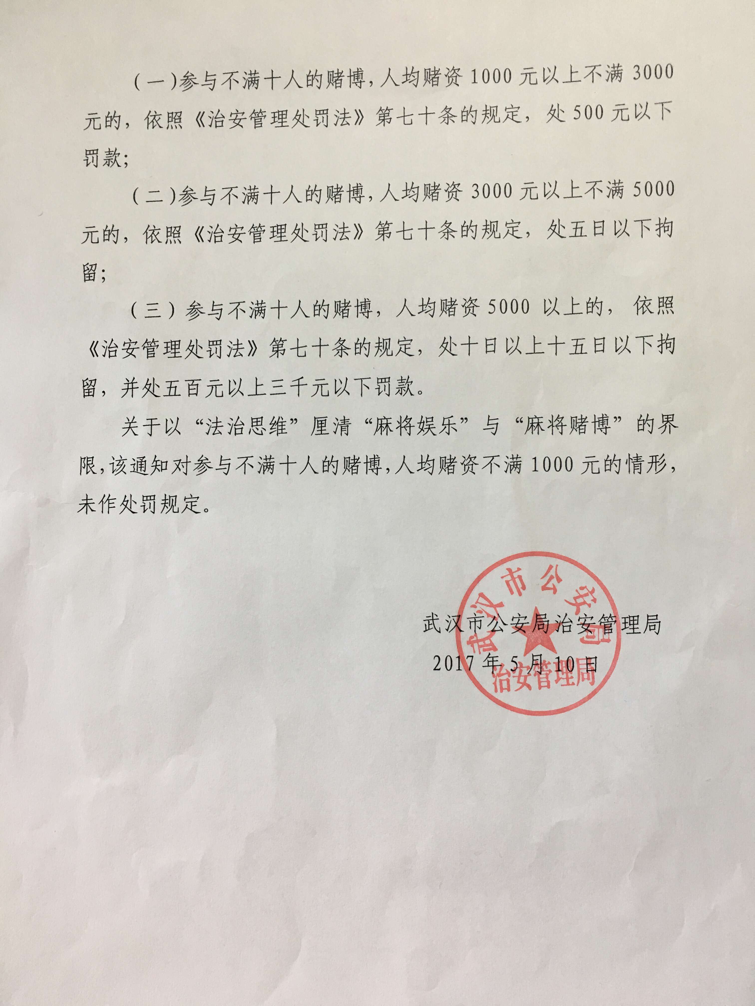 三、鉴于老百姓打麻将大多以娱乐为主要目的,建议具体数额标准可参考武汉大多数麻友目前实际标准。老百姓生活和娱乐水平逐年提升,具体标准或可适当放宽留有空间。