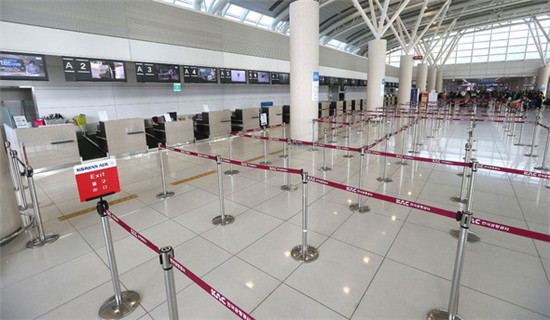 曾经挤满游客的济州国际机场国际航线出境大厅变得冷冷清清。
