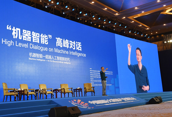 马云在2017中国国际大数据产业博览会上发表演讲。