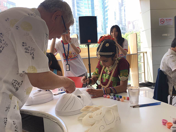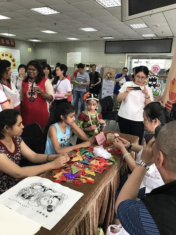 印度小朋友在民俗老师的指导下体验中华传统文化。