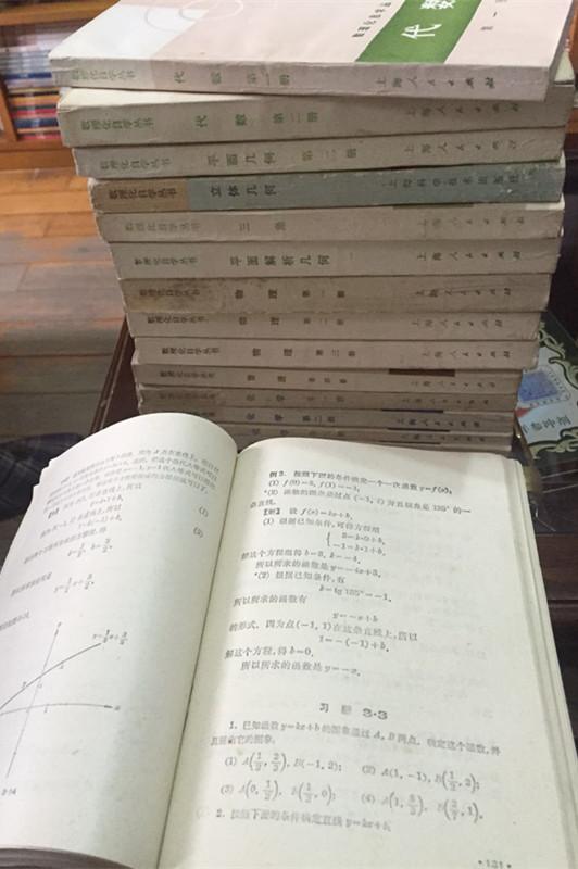 和现在任何一本教辅书相比,这套书无疑是朴素的,甚至可以说其貌不扬。全套一共17册,淡黄色的封面上只印有“代数”、“三角”这样的书名,翻开内页,除了一页具有时代特色的重印说明外,就是密密麻麻的概念解释、解题思路和习题,由于书页很薄,每个字都“力透纸背”,细细摸,还能感觉出铅字留下的凹凸感。40年过去了,这套书书页泛黄、铁钉生锈,但徐福生仍认为“现在的教辅书没一本比得上”。