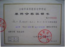 上海市首届高等教育自学考试,于1982年11月14日正式开始。我报考了第一次开考的全部4门课程。考试结果,《会计学原理》、《政治经济学》、《哲学》和《大学语文》这4门功课,我全部考试通过!其中,《会计学原理》,我竟然考得93分的高分。