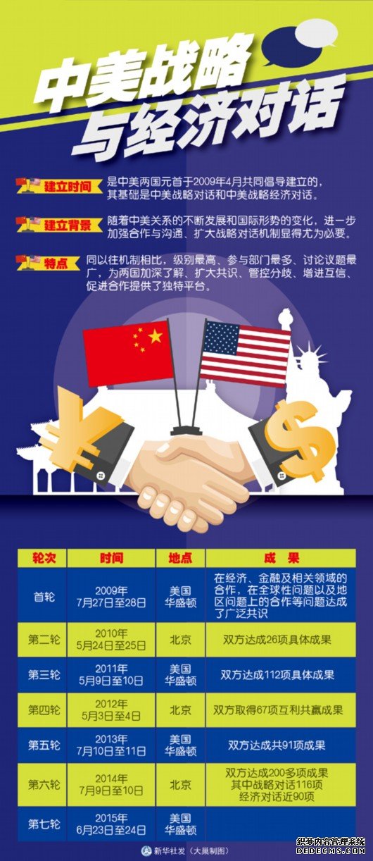 2015年6月22日至24日在美国华盛顿举行的第七轮中美战略与经济对话期间,中国国家主席习近平的特别代表国务委员杨洁篪与美国总统奥巴马的特别代表国务卿克里共同主持了战略对话,两国政府有关部门负责人参加。双方就重大双边、地区和全球性问题深入交换意见,并就以下各项成果达成一致。中美双方: