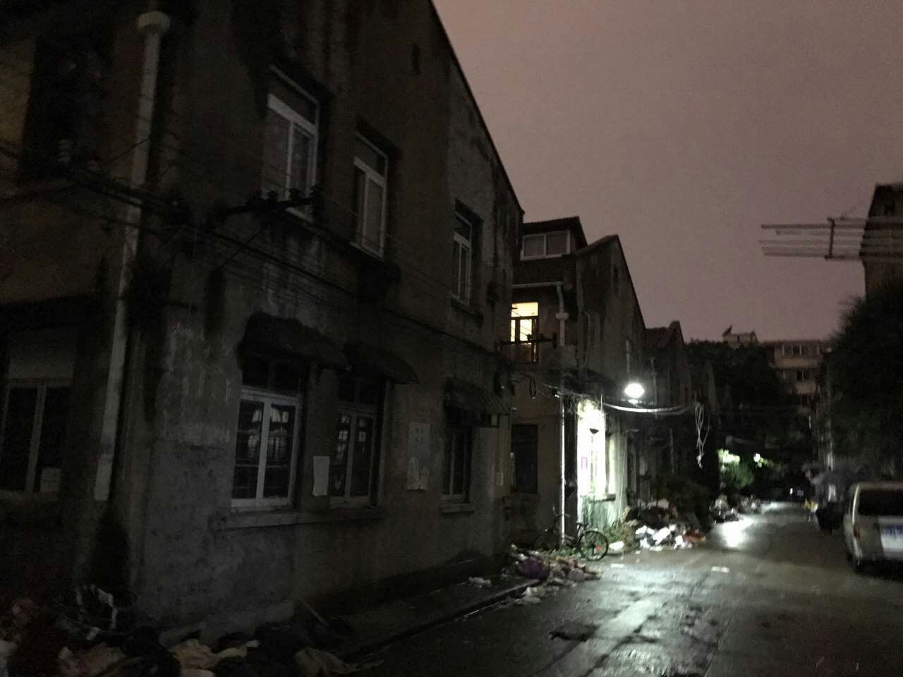 夜深了,还有几家透过窗户的灯光和大弄堂的路灯在夜空下点亮寂静的弄堂。
