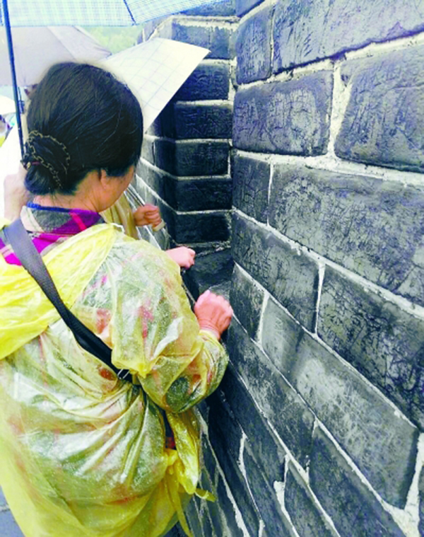 八达岭长城的一位工作人员告诉记者,在长城上刻字的情况已持续多年,近年来总体情况虽有所好转,但仍屡禁不止。上世纪七八十年代,大家文保意识不强,长城管理也不健全,城砖被刻字的情况非常多,中文外文都有。"但长城毕竟是世界级文物,一砖一瓦都是历史遗迹,被刻字的城砖不可能更换,更不能在砖上糊点东西把字遮住。"所以城砖被刻字后,一次破坏,很难痊愈。