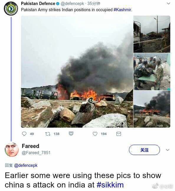 还有人指出,这些图片是印巴近日在克什米尔地区冲突的画面。