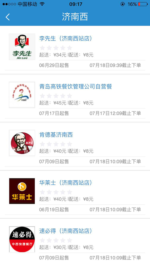 记者再查询从上海至北京的G112次列车,途经配餐站分别为上海虹桥站、南京南站与济南西站。其中,济南西站提供李先生、速必得等快餐,起送费均在30元以上,配送费同样为8元。