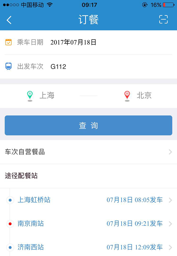 据铁路总公司有关部门负责人此前介绍,7月17日起,乘坐G、D字头的动车组列车出行的旅客,可以通过12306网站、手机App等方式预订,既可以订所乘列车餐车供应的餐食,也可预订沿途供餐站供应的社会品牌餐食。