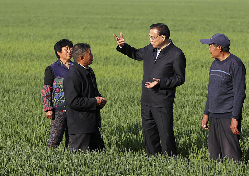 图为2017年4月20日下午,李克强在山东济南曲家村察看春季小麦长势。