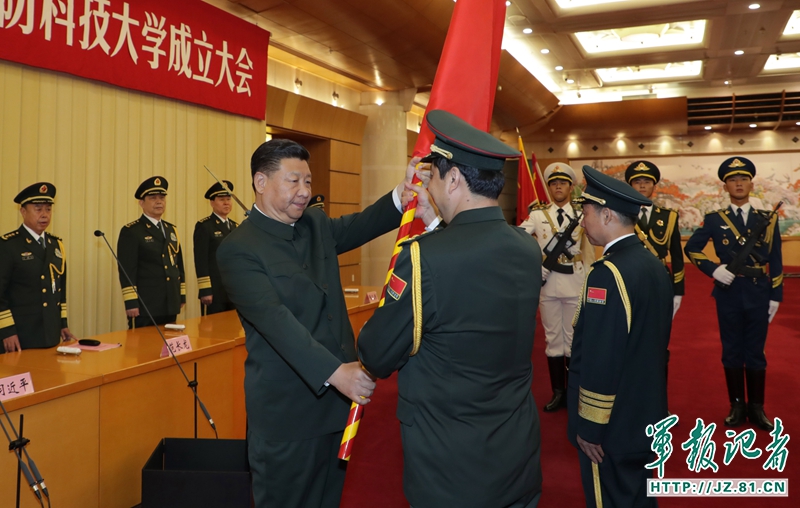 习近平向军事科学院国防大学国防科技大学授军旗致训词