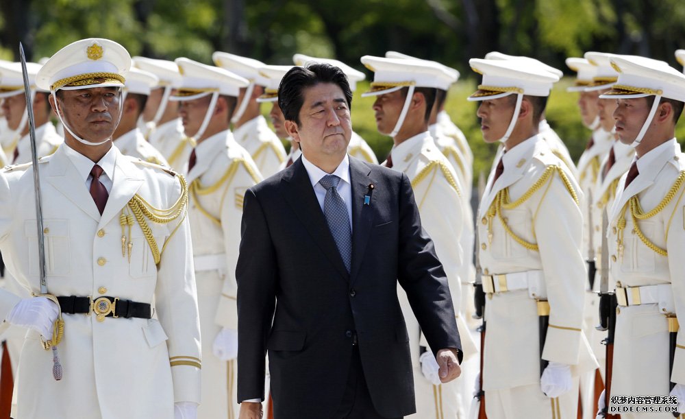 图为日本首相安倍晋三2013年9月12日视察日本自卫队/美联社