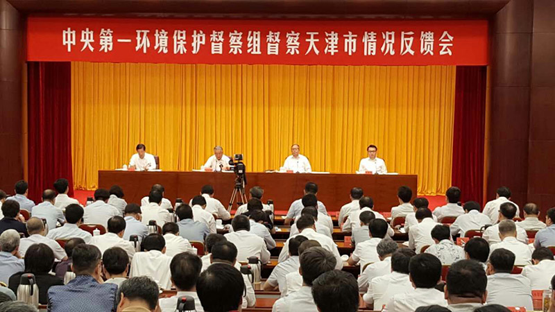 为贯彻落实党中央、国务院关于环境保护督察的重要决策部署,2017年4月28日至5月28日,中央第一环境保护督察组对天津市开展环境保护督察,并形成督察意见。经党中央、国务院批准,督察组于2017年7月29日向天津市委、市政府进行反馈。反馈会由王东峰市长主持,蒋巨峰组长通报督察意见,李鸿忠书记作表态发言,赵英民副组长,督察组有关人员,天津市委、市政府领导班子成员及各有关部门主要负责同志等参加会议。