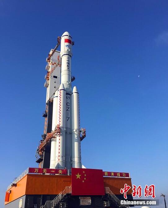 长征七号遥二运载火箭与天舟一号货运飞船组合体垂直转运完毕(图片来源于中新网)