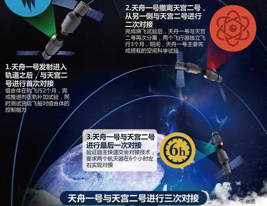 天舟一号与天宫二号实施推进剂在轨补加示意图(图片来源于搜狐网)
