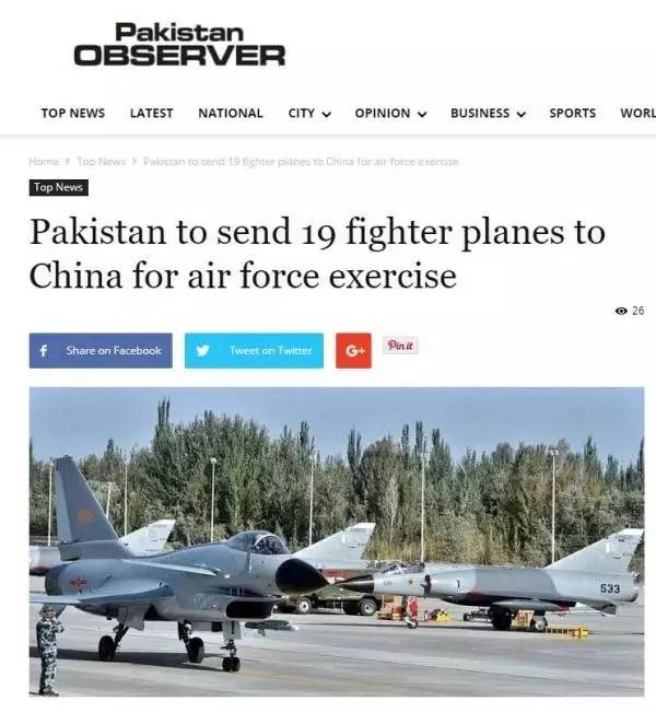 巴基斯坦《观察家》报8月1日报道,巴基斯坦驻华武官在中国环球电视网(CGTN)电话采访中,透露巴基斯坦空军的19架战斗机即将前往中国参加第6届中巴联合空军演习(按照往年惯例,本次演习代号应为“雄鹰6”)。