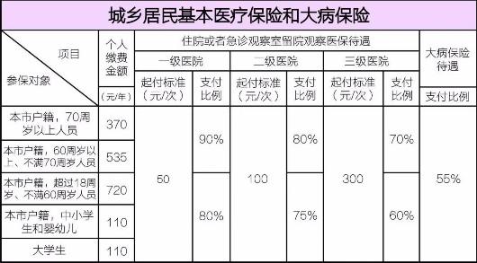 注:110-720元/年是覆盖上面两张表格的,不是指大家要缴纳两次钱哦! 小编说:你不是职工的话,可以参加上面的保险,虽然没有职工保险的力度那么大,但个人缴费的金额也比较小哦~ 家有婴幼儿及学生 只要缴纳110元/年 ![]() ![]()