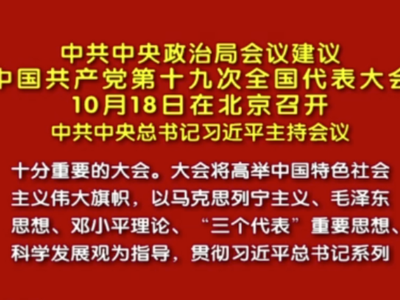 会议决定,中国共产党第十八届中央委员会第七次全体会议于2017年10月11日在北京召开。中共中央政治局将向党的十八届七中全会建议,中国共产党第十九次全国代表大会于2017年10月18日在北京召开。 会议强调,中国共产党第十九次全国代表大会,是在全面建成小康社会决胜阶段、中国特色社会主义发展关键时期召开的一次十分重要的大会。大会将高举中国特色社会主义伟大旗帜,以马克思列宁主义、毛泽东思想、邓小平理论、“三个代表”重要思想、科学发展观为指导,贯彻习近平总书记系列重要讲话精神和党中央治国理政新理念新思想新战略,认真总结过去5年工作,回顾总结党的十八大以来以习近平同志为核心的党中央团结带领全党全国各族人民坚持和发展中国特色社会主义的历史进程和宝贵经验,深入分析当前国际国内形势,全面把握党和国家事业发展新要求和人民群众新期待,制定适应时代要求的行动纲领和大政方针,动员全党全国各族人民坚定中国特色社会主义道路自信、理论自信、制度自信、文化自信,继续统筹推进“五位一体”总体布局、协调推进“四个全面”战略布局,继续推进党的建设新的伟大工程,为决胜全面建成小康社会、努力开创中国特色社会主义新局面而团结奋斗。 大会将选举产生新一届中央委员会和中央纪律检查委员会。 会议指出,目前大会各项筹备工作进展顺利,要继续扎实做好大会筹备工作,确保大会胜利召开。 会议还研究了其他事项。 编辑:北风 (责任编辑:北风) |