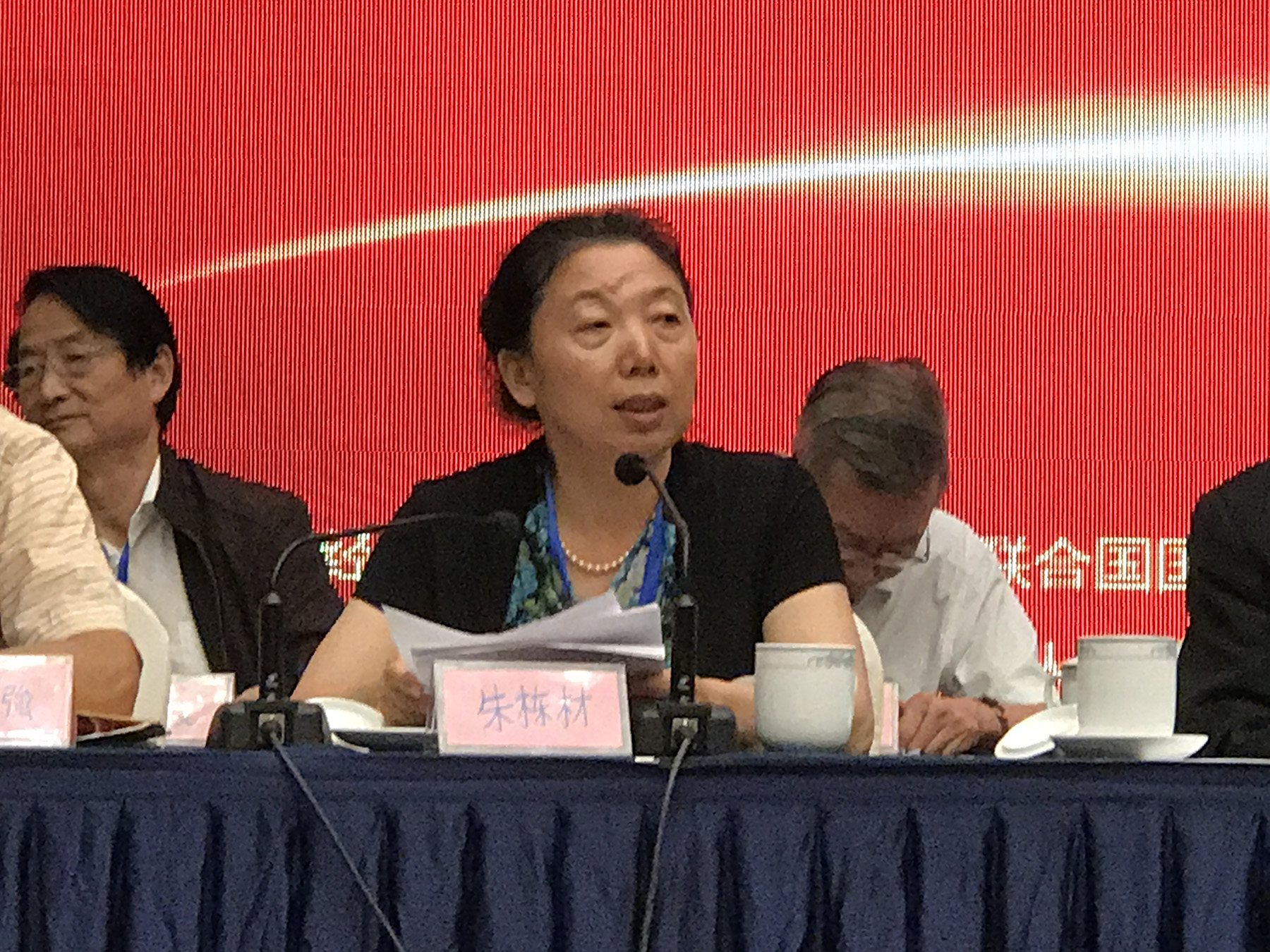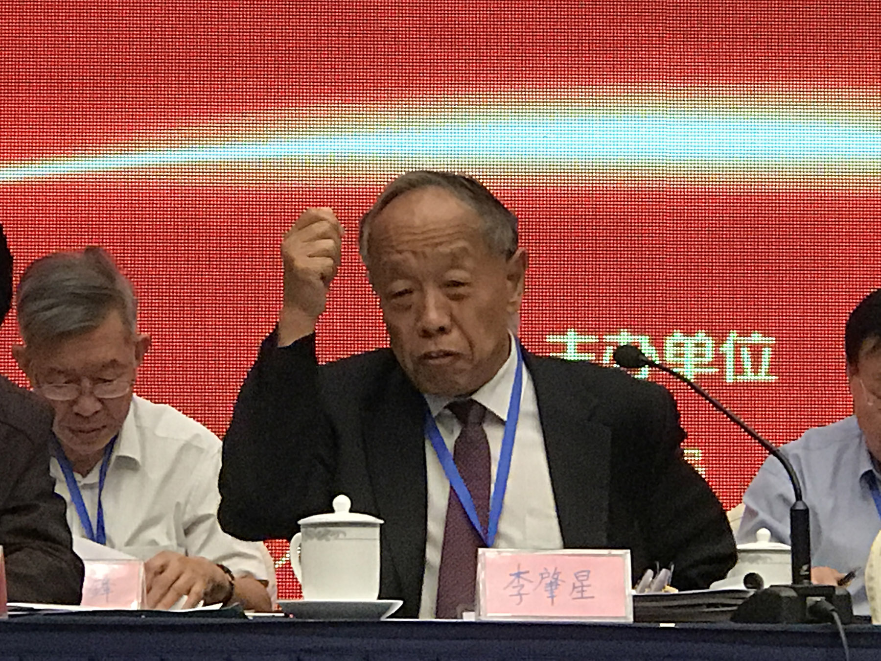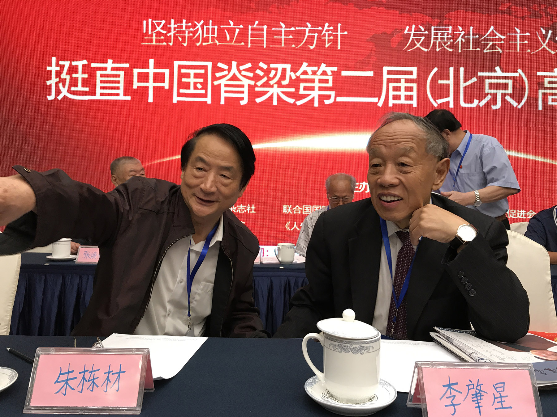 李肇星(右)、朱栋才在会议上。