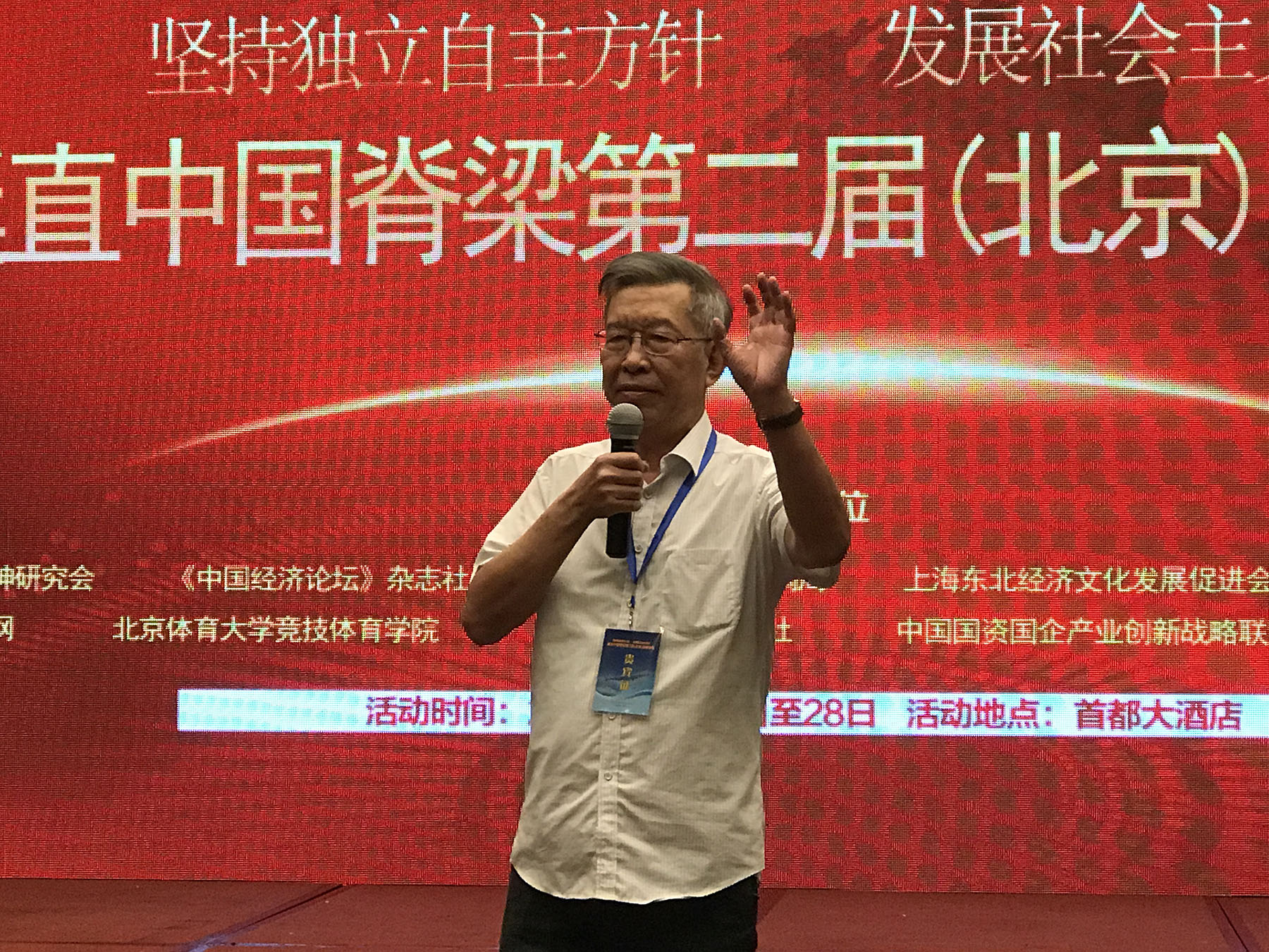 “坚持独立自主方针 发展社会主义经济 • 挺直中国脊梁第二届(北京)高峰论坛”于8月26日至28日在北京举行。本次论坛由中国延安精神研究会、《中国经济论坛》杂志社、联合国国际合作协调局、上海东北经济文化发展促进会、北京大学现代科学与哲学研究中心、上海老辰光网联合举办。
