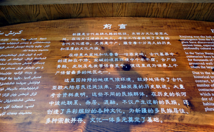 一路平安皆吉祥; 今朝寻源博物馆, 明日结伴走新疆。 从小就对新疆有憧憬,那时一首新疆是个好地方的颂歌响彻大江南北、五湖四海。弄堂里有解放初期就去支援新疆建设的垦荒干部,他的妻子和两个比我大的子女都生活在上海。那年他回上海招人,把新疆说的千般好,万样娇。弄堂里有两位年青人就报名去了新疆。我小学毕业那年,我一位同班同学因父亲娶了后母,也选择去了新疆。一本《军队的女儿》感人至深的成长故事,更让我思绪万千。对军垦、对边疆留下了深刻印象。也可说我们六九届上山下乡一片红,我所以选择去北大荒、去兵团,与儿时的憧憬有着前因后果的关联。 五十年过去了,对新疆还是那么一往情深,总想着去走走,去看看。去见识辽阔,去欣赏魅力。8月8日新疆游启程了。特快列车一路向西而去,跨过千山万水,看遍青山绿水;天下知青是一家,结伴同行谈笑多;两天时间转瞬而过,名闻遐迩的“戈壁明珠、歌舞之乡”新疆维吾尔族自治区首府乌鲁木齐到了。热情的新疆导游就在乌鲁木齐站门口迎候我们。人群中我一眼看到接站的一块纸牌上写着接上海59人李坤山等游客。我不知道李坤山是不是我们团队的。马上就对张领队说,是不是找我们的。果然猜测没错。平安到达,接头快速。兴致勃勃的旅行团队就在车站广场留下了出行全家福。 ![]() 两辆车载着我们先去了宾馆。午餐后的第一站是参观新疆博物馆。雄伟壮观的新疆维吾尔族自治区博物馆安检严密,免费参观,瑰宝绮丽,异彩纷呈。 我们先观看了《新疆民族风情陈列》,新疆自古是多民族的家园,目前有47个民族。展览融合了新疆维吾尔、汉、哈萨克、回、柯尔克孜、蒙古、锡伯、塔吉克、乌孜别克、达斡尔、满、塔塔尔、俄罗斯等13个世居新疆的兄弟民族丰富多样民居建筑,悠久传统民族服饰,造型独特生产工具,构思巧妙日常用品,独具特色民俗文化等。馆内精品荟萃,尽显新疆各民族魅力多姿的民俗文化风情。各色高仿真人像和栩栩如生的动物标本让我们兴味盎然。五彩斑斓一家亲,绚丽风情边疆媚。住房服饰日用品,世俗习惯尽现美。 ![]() 再看《找回西域昨日辉煌——新疆古代历史文物陈列》。七百多件历史文物,陈列着文明的曙光、金石之光耀天山、汉通西域开先河、群雄争霸民族融合、大唐雄威置安西、勇捷回鹘迁天山、蒙古西征立汉国等单元。文字沙盘照片,图表模型拓片,塑像摹绘文献,装置光屏声电。集中了新疆各地出土的精品文物,考古发掘的珍贵文物。展示了新疆历史发展进程和新疆原始、奴隶、封建社会的历史概况。石陶木铜铁玉器,雕塑岩画美食香,铁证公元前史迹,中国版图有新疆。 ![]() 上楼继续观看震撼人心的博物馆专题展《逝者越千年——新疆古代干尸陈列》。展出新疆境内、丝绸之路沿线的210件/组精品文物,拉近了文物与观众的距离。从中我们看到了地域特征鲜明的陶器,闻名中外学术界的吐鲁番文书,历千年仍光鲜艳丽的毛、麻、棉、丝织物和千姿百态的唐代泥俑等。还难以想象的看到了:楼兰美女卧千年,且末宝宝享安详;唐朝将军张雄壮,彩绘大妈饰时尚。 ![]() 紧接着我又观看了《指尖旋舞 艺成天工——新疆文物保护修复成果展》。据说也是新疆 “文物保护修复”领域的首个主题展,汇集了丝绸之路新疆段出土且修复保护的精品文物共130件/组,展示了近十年来新疆文物修复的累累成果。展览最大的突破是将文物修复工作室“搬进”展厅,观者可亲眼看到工匠如何让文物“活”起来。指尖炫舞修文物,走出深闺幕后人,艺成天工瑰宝献,丝绸之路再继承。 ![]() 走出博物馆。太阳还悬在空中。我想着今天溯源读新疆,明天才是真正开始迈开大步看新疆呢。 ![]() 二 乌市导游送西瓜,
