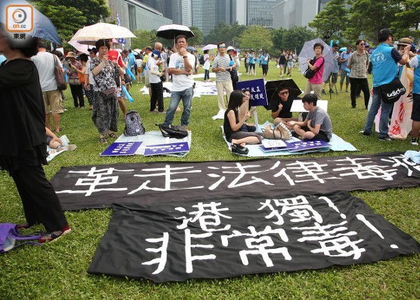 ![]() 集会人士在地上展出反“港独”横幅。(图片来自港媒) 香港各大专院校近期频现“港独”标语、冷血言论甚至人身攻击,激起社会强烈谴责。香港立法会议员何君尧今日(17日)发起“反港独、反冷血、反伪学吶喊大会”,关注校园“港独”问题,呼吁革除“占中”黑手戴耀廷教职。据港媒报道,超过4000名市民参与。
