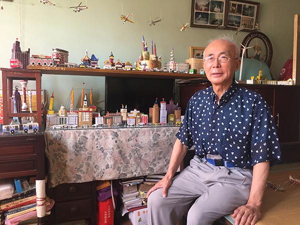 吴海荣出生于上海,1953年毕业于上海交通大学电力系统专业,曾学过电力工程制造。画画和制作手工模型是他退休后最大的爱好。 他告诉澎湃新闻记者,他平时有读报、看新闻的习惯,尤为关注中国经济、军事力量的发展。这200多件作品基本就靠家里常用的剪刀、尺子、胶带纸、小刀制作而成,仅仅花费了2年不到时间,平均1-2天就能完成一件作品。 “它们都用废纸做成,有些是保健品盒子、药物包装纸,还有些是胶囊、牙签、大头针、蛋壳这些生活中常见的物品,都是废物利用。”吴海荣说,“这些模型中,有些地方我年轻时候去过,或者在报纸上、电视上看到过,有些地方我凭着一眼印象就能回忆出来制作,有些复杂的我对照着照片做。” 眼睛老花的吴海荣,一旦做起这些模型,就会摘掉眼镜,保持手不抖,眼神专注,全身心投入到制作过程中去。他说:“制作的过程和成品都给我带来了身心愉悦,真正感受到老有所为、老有所乐。” 尽其所能弘扬爱国主义 为什么要制作手工模型呢? 吴海荣说,他从2年前开始制作这些手工作品,当时看到很多食品、药品等包装盒随意被丢弃觉得很浪费,“这些包装纸其实色彩鲜艳、图案精美,质地优良,为什么不拿来变废为宝,一来可以宣扬下环保的理念,二来可以通过手工模型,宣扬爱国主义理念。” 就这样,2年间,吴海荣除了每天骑自行车出门买菜外,大部分时间坐在居室里制作这些模型。 他说,这一爱好与他学习经历和工作经验密不可分。1953年上海交通大学毕业的他,服从分配前往北京华北电业管理局工作,在电力设计部门、管理岗位上做过5年,随后1957年因组织机构调整,他前往安徽省电力局工作,直到1977年才调回上海,在中国华东电力集团工作。 设计高压输电站、变电站曾是他年轻时工作的一部分,因此他时常全国各地跑,在北京工作期间,他还在清华大学“走读”,自愿报名学习俄文,一周三天利用晚间2小时学习,仅仅用了一年时间,吴海荣就可以利用字典翻看当时一些俄文材料。 “当时我参加工作时,设计部门刚成立不久,很多设计方案都只能参考苏联的,必须要看得懂俄文。”说起祖国的发展,吴海荣禁不住激动万分,“这么多年,我看着祖国变得强大,越来越多由我国研制的产品得到应用,甚至海内外越来越多的‘中国制造’,作为一名中国人,我感到很自豪,很骄傲,每个中国人都应该引以为傲。”而作为一名共产党员,吴海荣表示,将会在他的有生之年,尽其所能为弘扬爱国主义精神贡献一份力量。 “爱国主义不能成为一句空话,爱国主义教育也应该从娃娃抓起。”吴海荣告诉澎湃新闻记者,当前越来越多的年轻一代崇尚洋文化、洋食品等,对中国的历史文化缺乏深入的了解,然而中国当前在世界经济全球化的背景下,随着改革开放的发展以及一带一路的推动,中国的整体竞争力在世界舞台上日益强大,作为中国人应该学以致用,为祖国贡献一份力量。 (责任编辑:日升) |