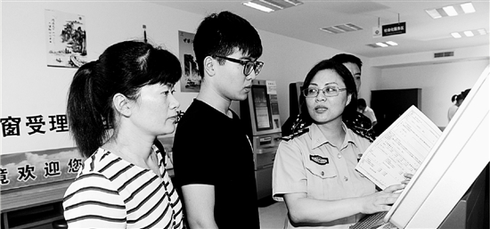 胡朝霞在为群众办理出入境业务。北仑公安分局供图