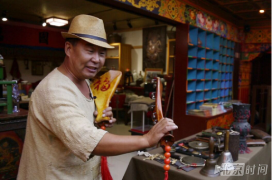 图:老北京吆喝爱好者阿龙在位于南锣鼓巷的非遗博物馆内进行表演