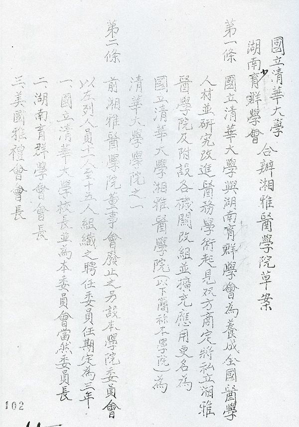 国立清华大学与湖南育群学会1936年7月签署合办湘雅医学院草案。 湖南省档案馆馆藏 黄珊琦 供图