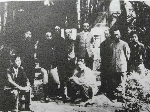 右起毛应斗、吴征镒、曾昭抡、袁复礼、闻一多、黄钰生、许维遹、李继侗、郭海峰、李嘉言。 引自《联大长征》