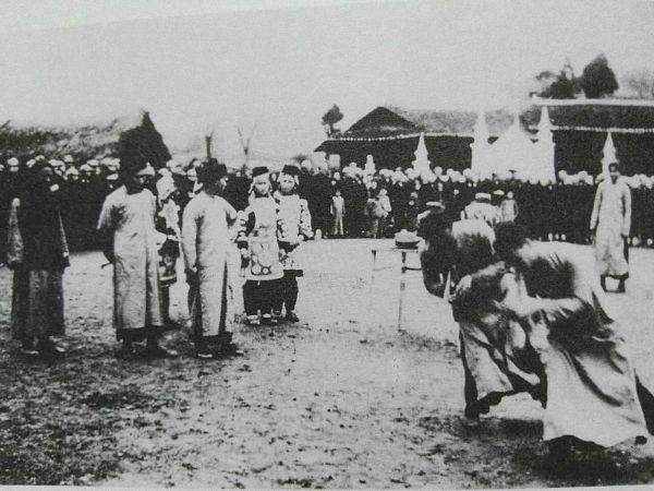 3月26日旅行团挺进贵州鈩山,举行苗汉联欢会,李继侗教授和徐医官合舞华尔兹答谢。 引自《联大长征》