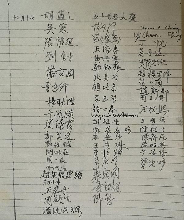 赵新那的姐姐赵如兰收藏的宾客签名笺,记录了1943年前后赵元任家庭聚会的盛况。