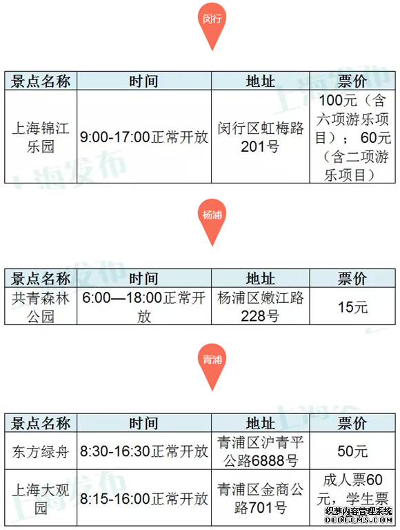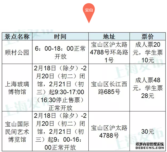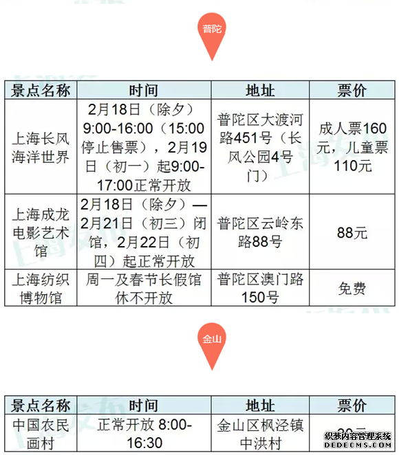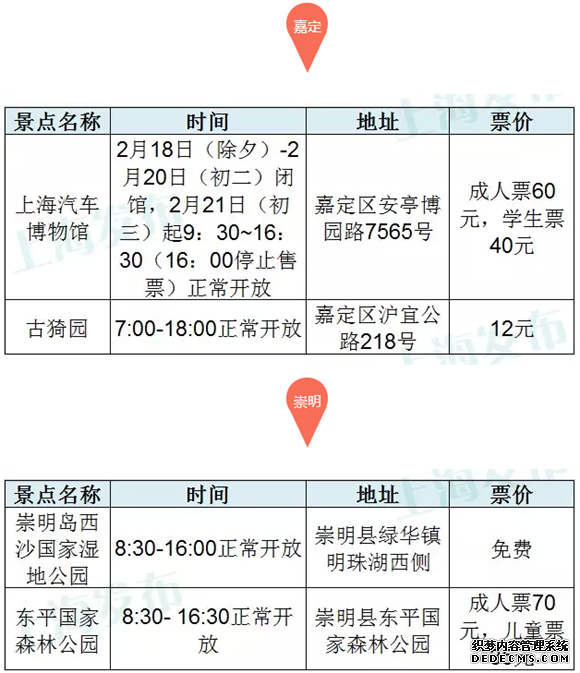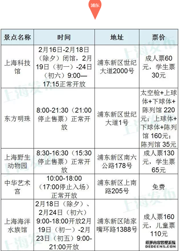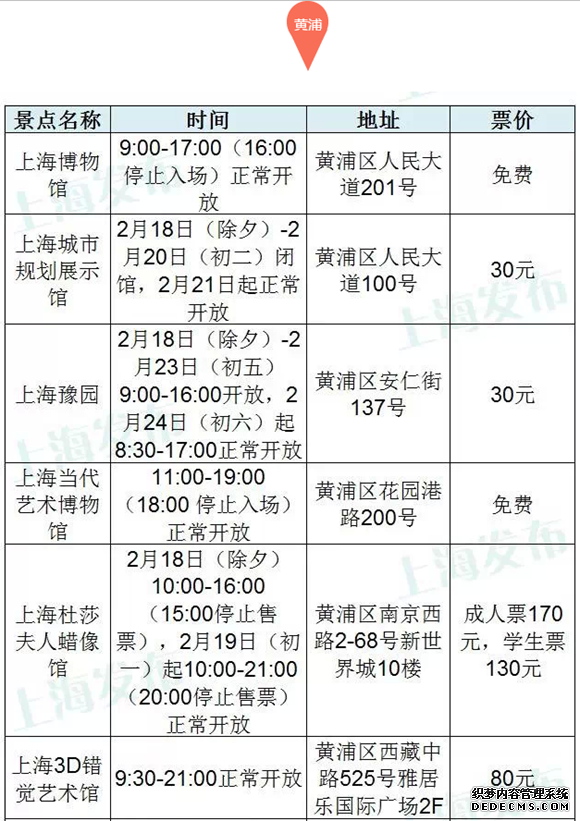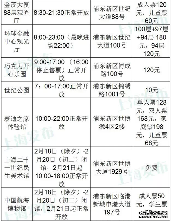 上海45家主要景点春节开放时间