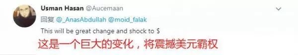 ▲资料图片:2015年8月14日,中国石化中原油田的员工在位于沙特阿拉伯沙漠腹地的一个石油钻井平台上作业。(新华社) “我认为用人民币定价石油的时刻即将到来,一旦沙特接受,那么石油市场其他国家也会仿效。”温伯格说。 外媒认为,这个新模式预示了一个可能——美元霸权或将被终结。 在社交媒体上,中俄联手做的这件大事也令许多外国网友表示令人振奋,他们纷纷看好中俄关系以及两国间创造的这一新模式: