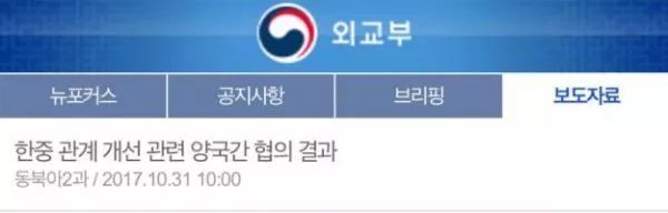 ▲韩国外交部官网截图:关于改善中韩关系两国间协商结果