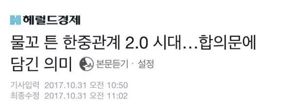 ▲韩国《先驱经济报》报道截图:关系正常化的中韩2.0时代